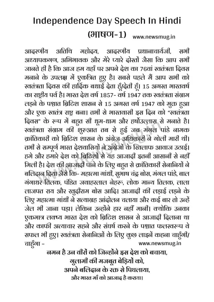Independence Day Speech In Hindi (भाषण-1)